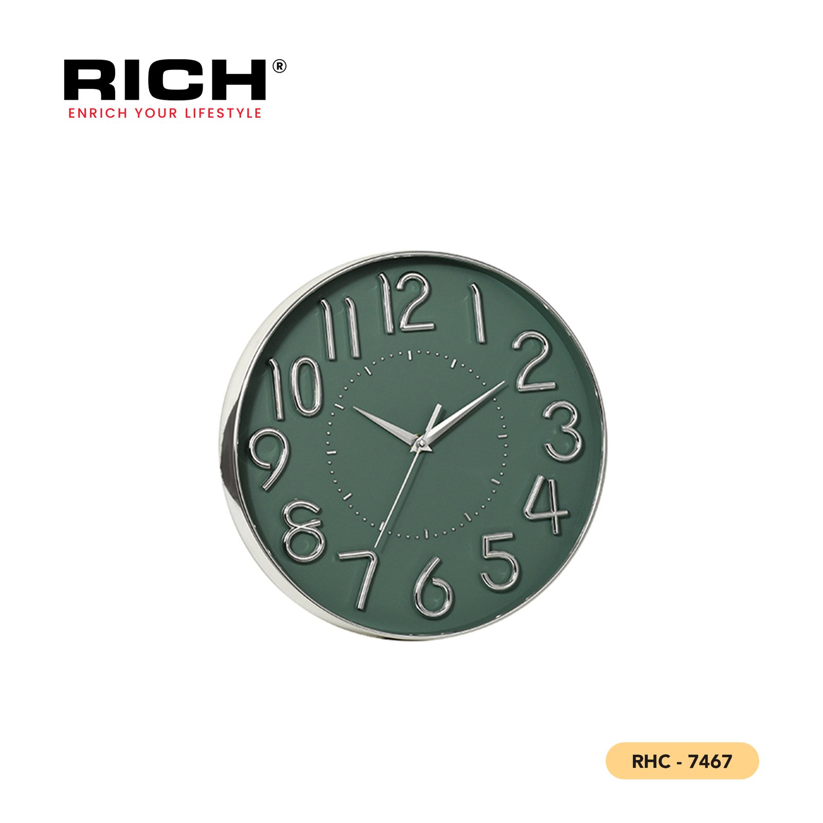 The RHC-7467 Wall Clock delivers a quiet, understated beauty and rock-solid reliable performance. With its clear numerals and precise, accurate timekeeping, it is the perfect choice for spaces that value simplicity and clarity without compromising on quality or style.