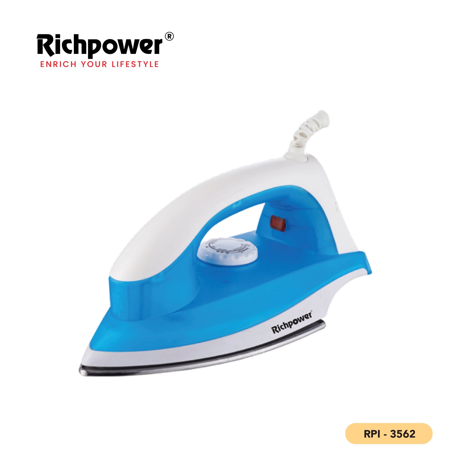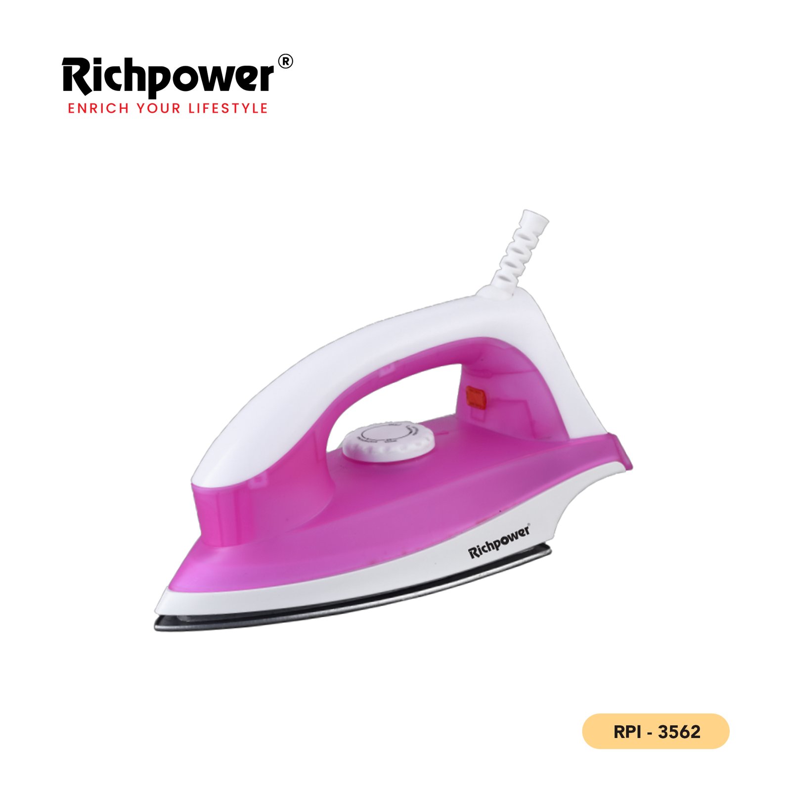 The Richpower RPI-3562 offers reliable heat distribution with easy temperature adjustment. A compact and energy-efficient appliance, it is perfect for smooth ironing at home, delivering high performance without compromising affordability.