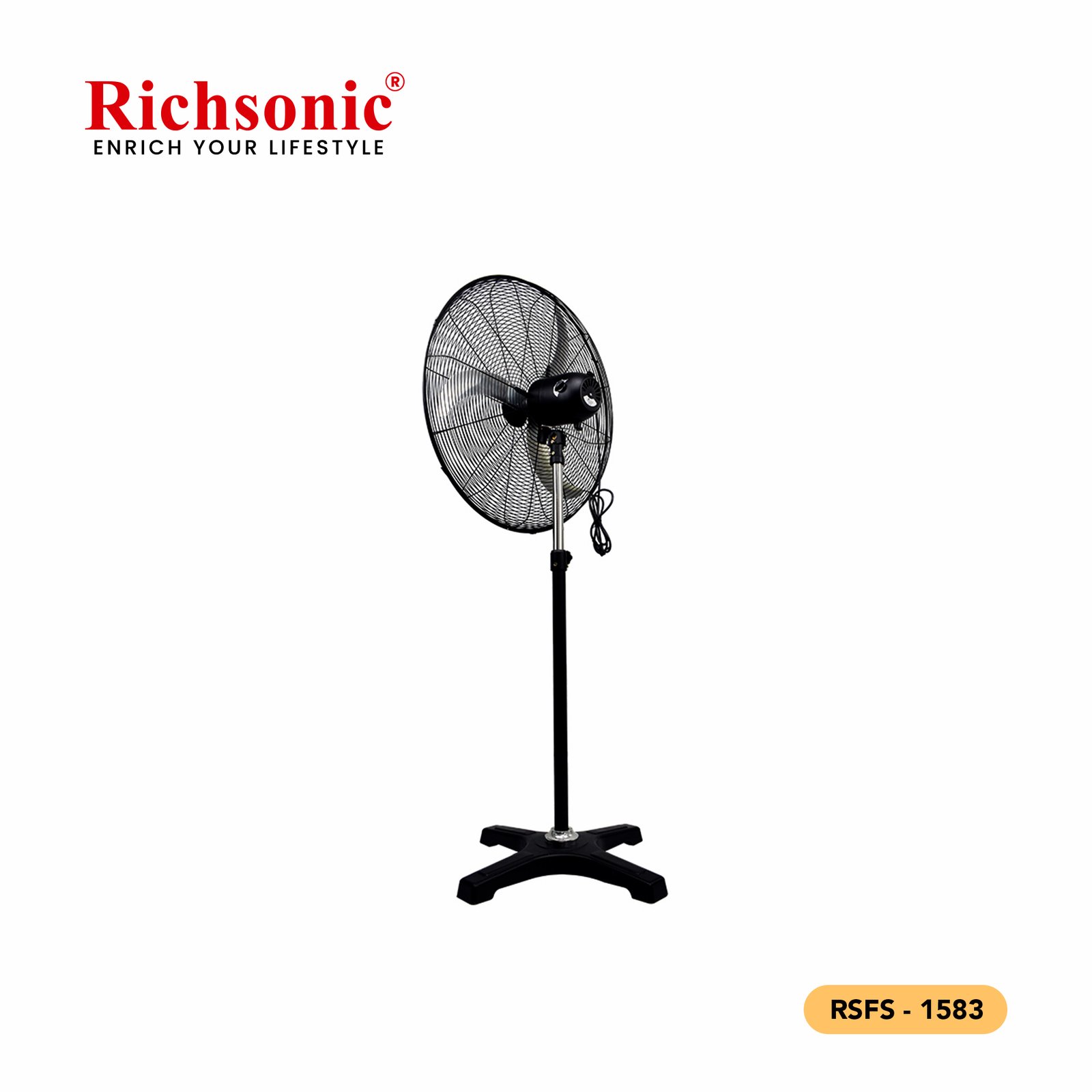 The Richsonic RSFS-1583 delivers high-volume airflow for large indoor and industrial areas. Designed with reinforced metal blades and a sturdy base, it operates smoothly even under continuous use.